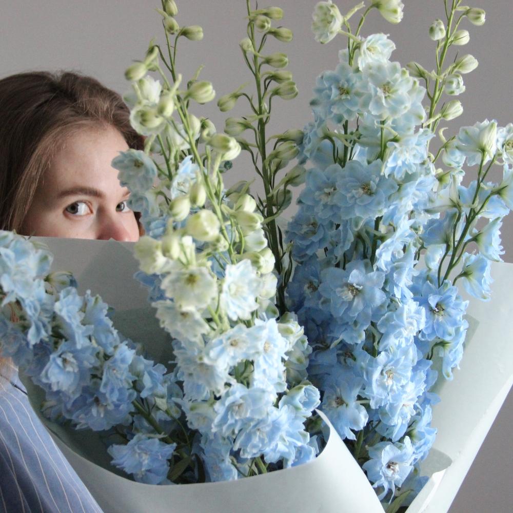 Дельфиниум – 9 шт.Упаковка – 1 шт.Лента атласная – 1 шт.