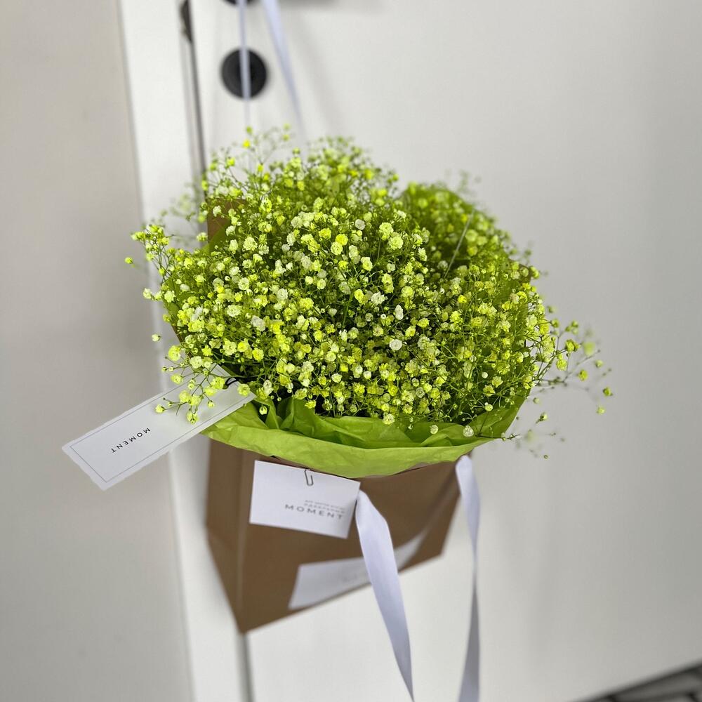 Гипсофила – 3 шт.Тишью – 2 шт.Крафт – 2 шт.крафтовый пакет – 1 шт.Карточка для подписи – 1 шт.