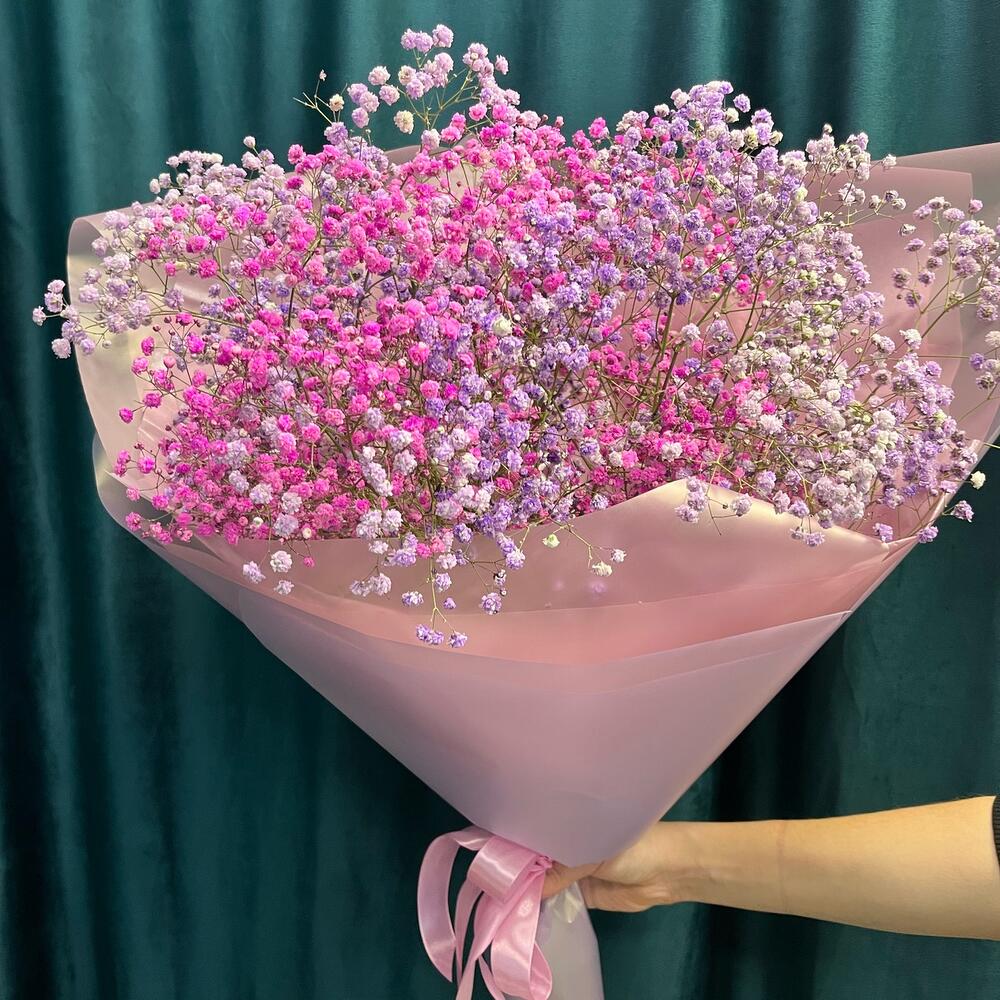 Гипсофила – 11 шт.Лента атласная – 1 шт.Тишью – 2 шт.Пленка дизайнерская – 1 шт.