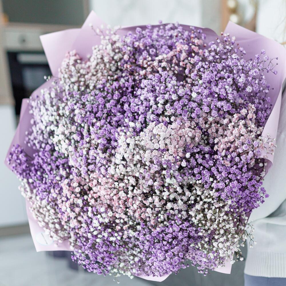 Шикарный букет из воздушной гипсофилы. Получатель точно не останется равнодушным при виде такого гиганта .Инструкция по уходу за цветами прикреплена к каждому заказу.Цветы гипсофилы отличаются стойкостью и даже при высыхании не теряют, декоративности и цвета. Что позволяет, долгое время украшать интерьер в качестве сухоцветов.Подпишем открытку с вашими пожеланиями бесплатно