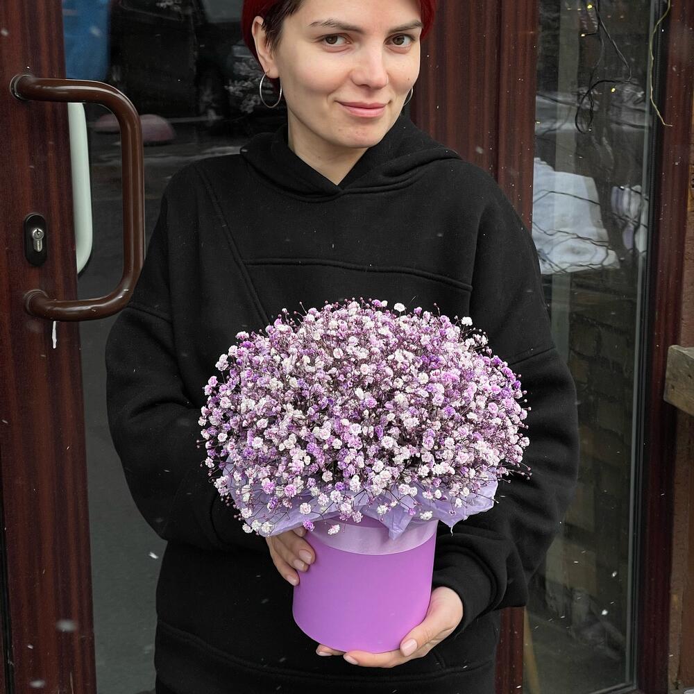 гипсофила лавандовая – 5 шт.Коробка шляпная – 1 шт.