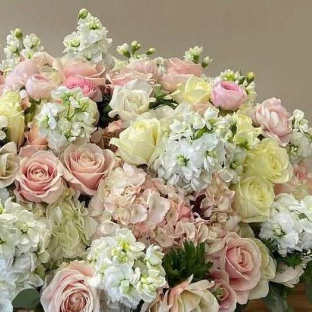 “Эвкалиптическая роскошь” гортензия и пионовидная кустовая роза