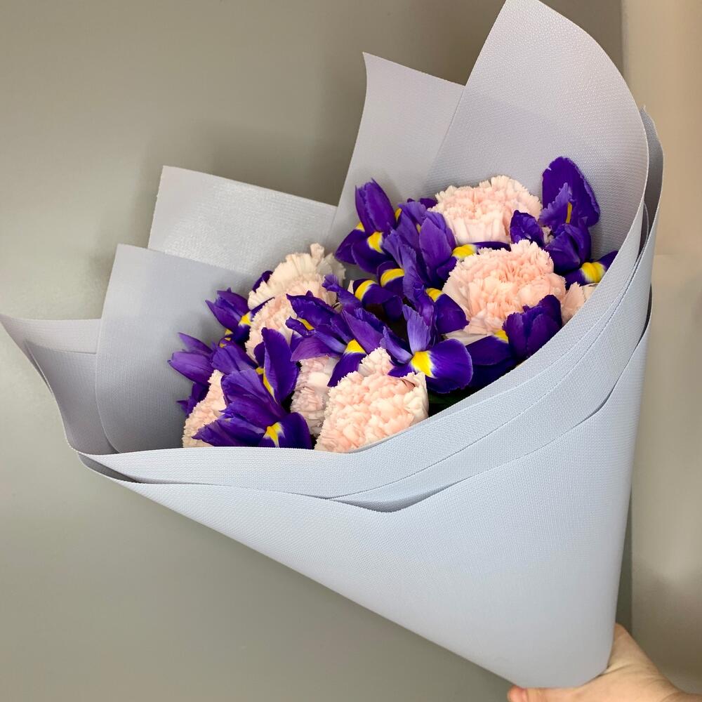 Ирис – 10 шт.Лента атласная – 2 шт.Диантус – 7 шт.Фетр – 2 шт.
