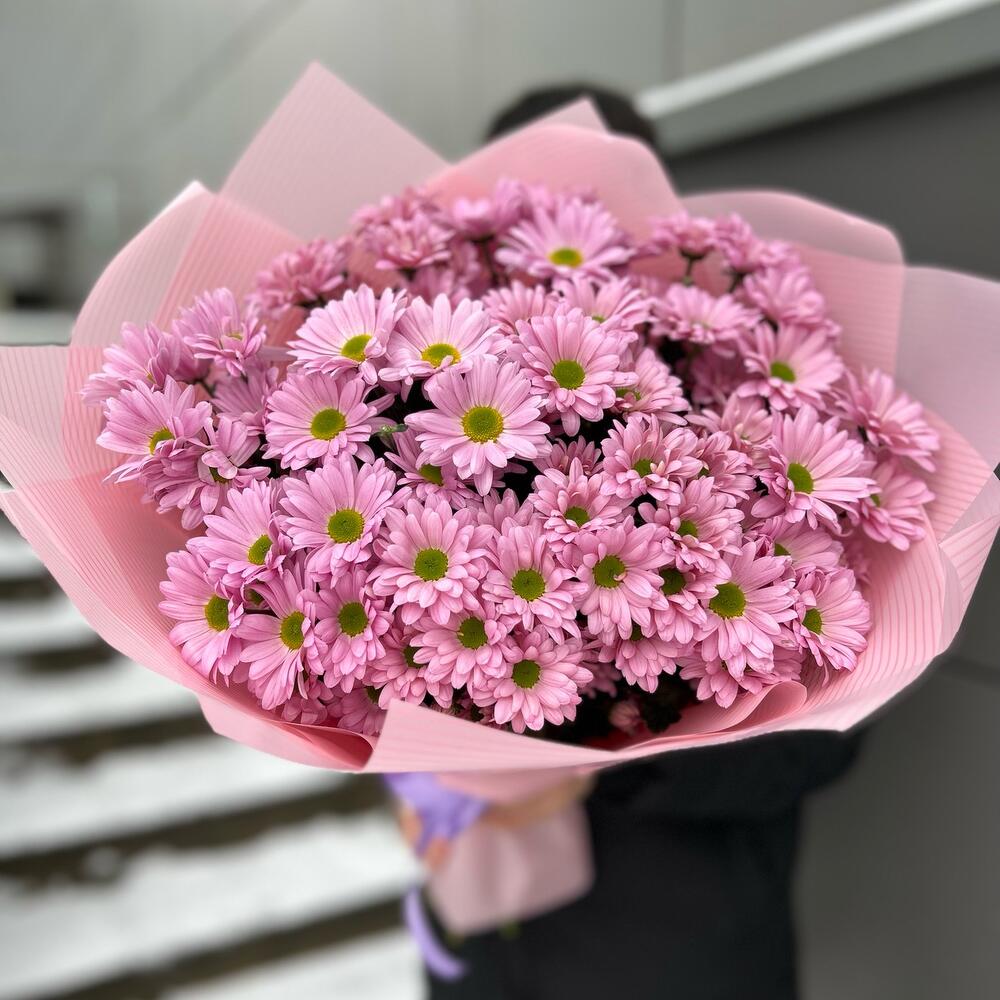 Букет из 11 веток ромашковых хризантем . Количество ромашек в букете может достигать 101 штуки.