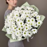 Букет хризантем (ромашковидных) с салалом, 5 шт