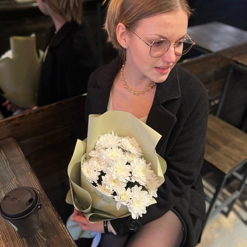 Объемный букет с очаровательными белыми хризантемами!В зависимости от сезонности цветов, мы можем немного изменить состав букета, сохраняя гамму и настроение композиции.Так как все цветы индивидуальны, как люди, букеты с одним и тем же составом тоже могут немного отличаться, но мы стараемся максимально приблизиться к картинке. Мы — очень творческая команда и хотим все силы бросить на создание хороших букетов для вас, поэтому ответственность за доставку мы полностью передали в руки команды FlowWow. Поэтому мы только подготавливаем ваши заказы и фотографируем их для вас перед доставкой, а курьеров назначает и контролирует сам агрегатор. Будем благодарны за оценку именно нашей работы, качество композиции и цветка!