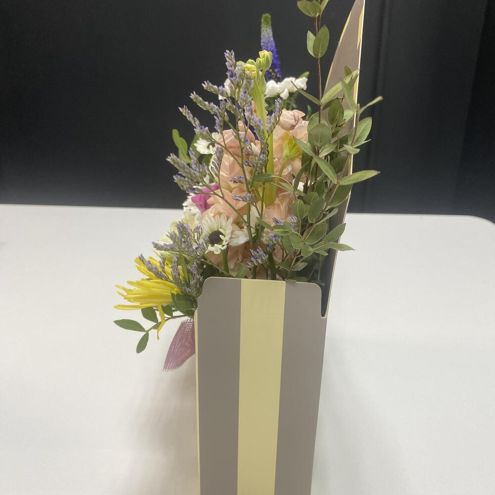 Вероника – 2 шт.Лизиантус – 1 шт.Маттиола – 1 шт.Хризантема – 3 шт.Оазис – 1 шт.Конверт – 1 шт.зелень фисташки – 1 шт.
