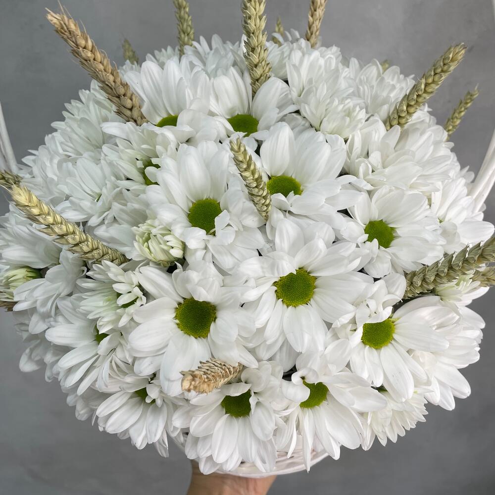Корзина – 1 шт.Оазис – 2 шт.Пшеница – 20 шт.Хризантема Бакарди – 9 шт.
