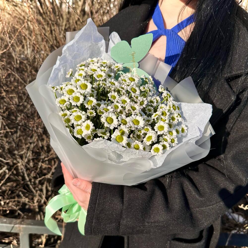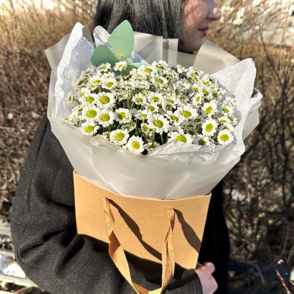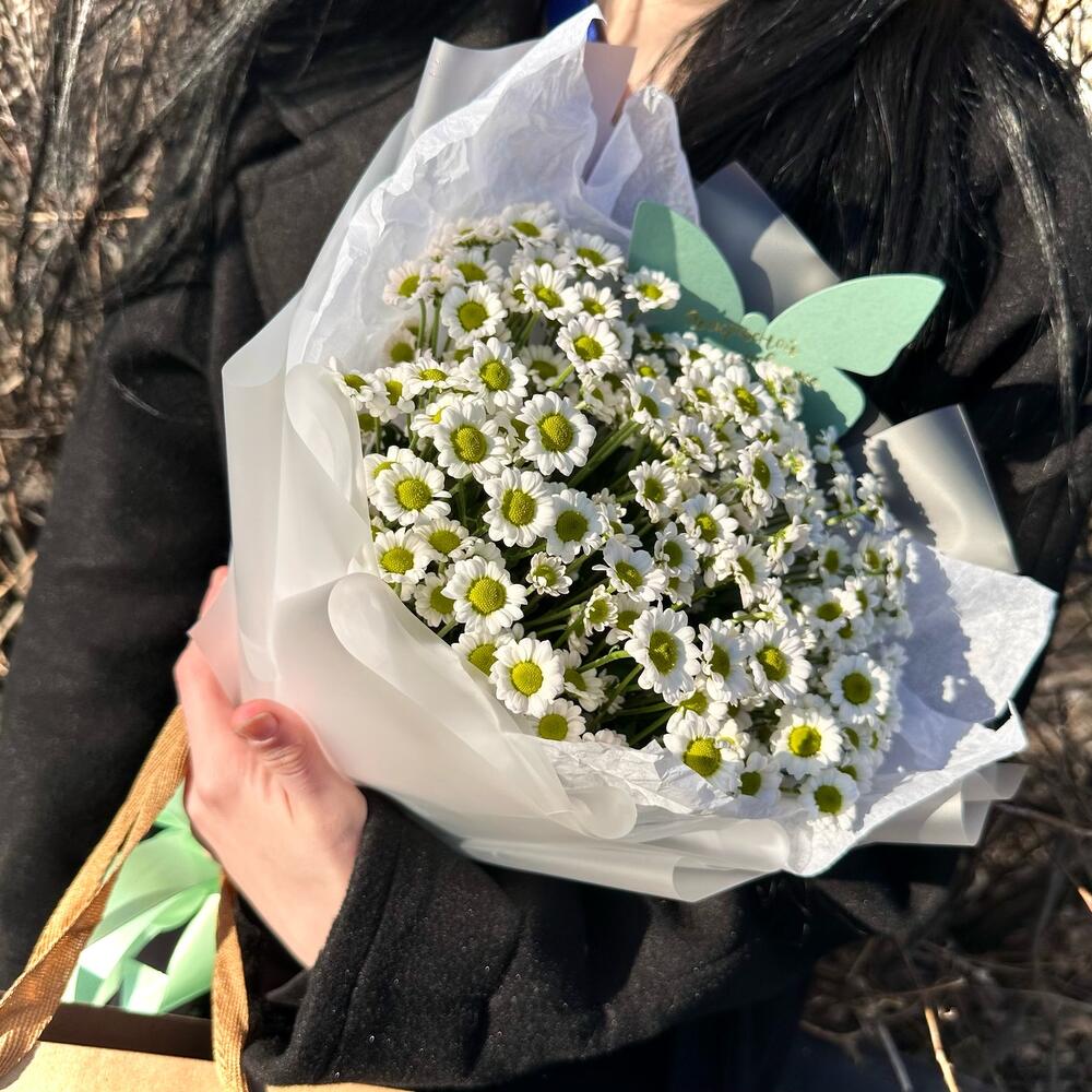 Стильный букет белые сантинии