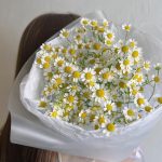 Лента атласная – 1 шт.Ромашка кустовая – 7 шт.Упаковка дизайнерская – 1 шт.Упаковка тишью – 1 шт.