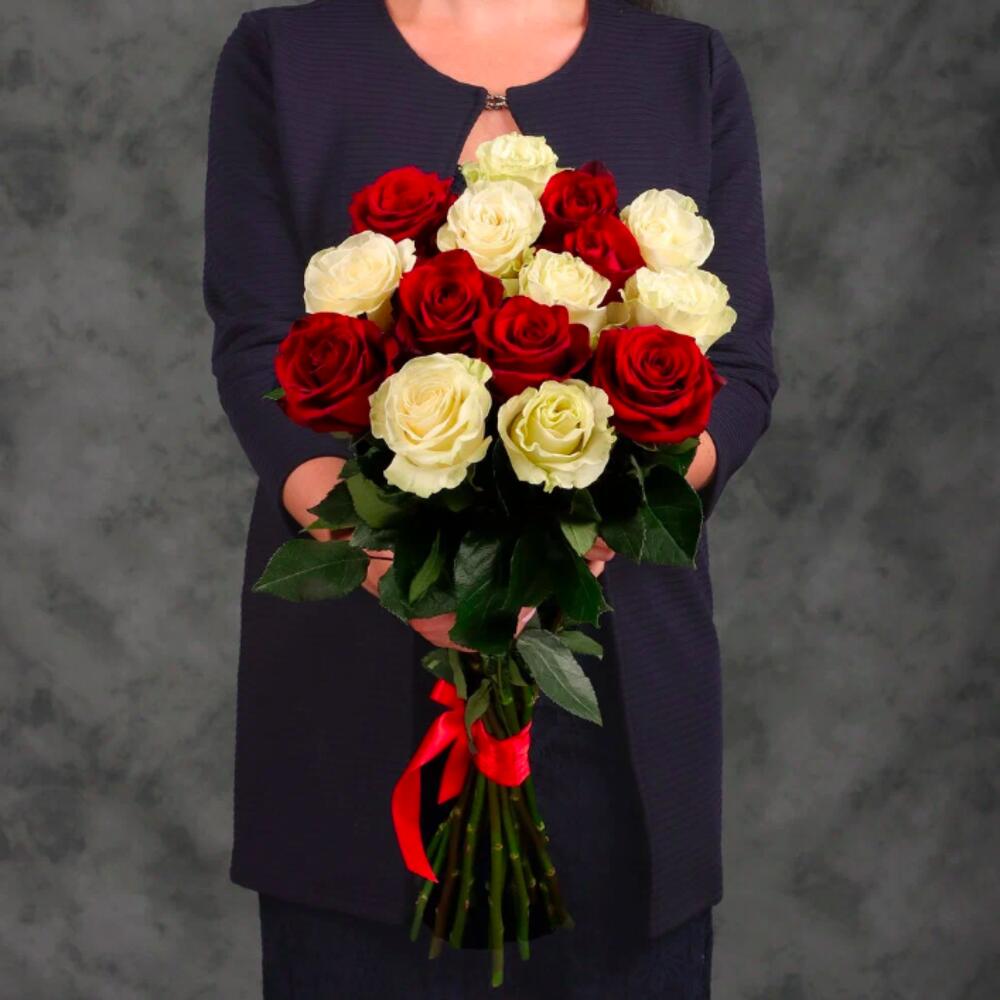 Букет 15 красных и белых роз