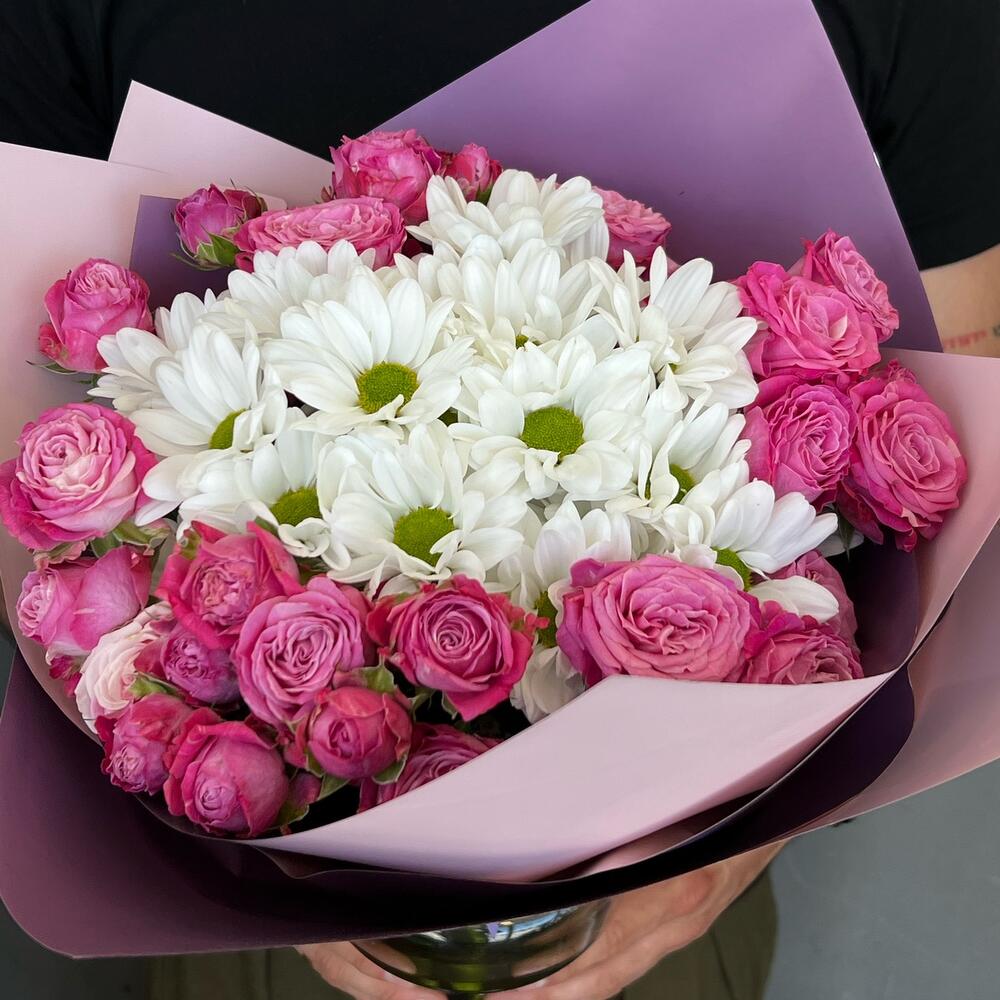 Гвоздики, Пионовидные розы, Розы