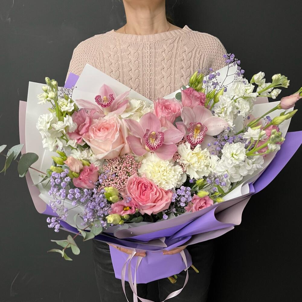 Букет с орхидеями и кустовыми розами Балет