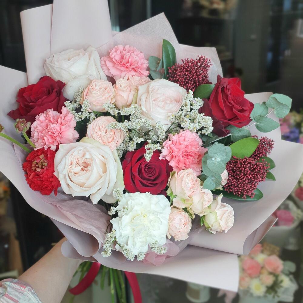 Категории: Гвоздики, Кустовые розы, Пионовидные розы, Розы