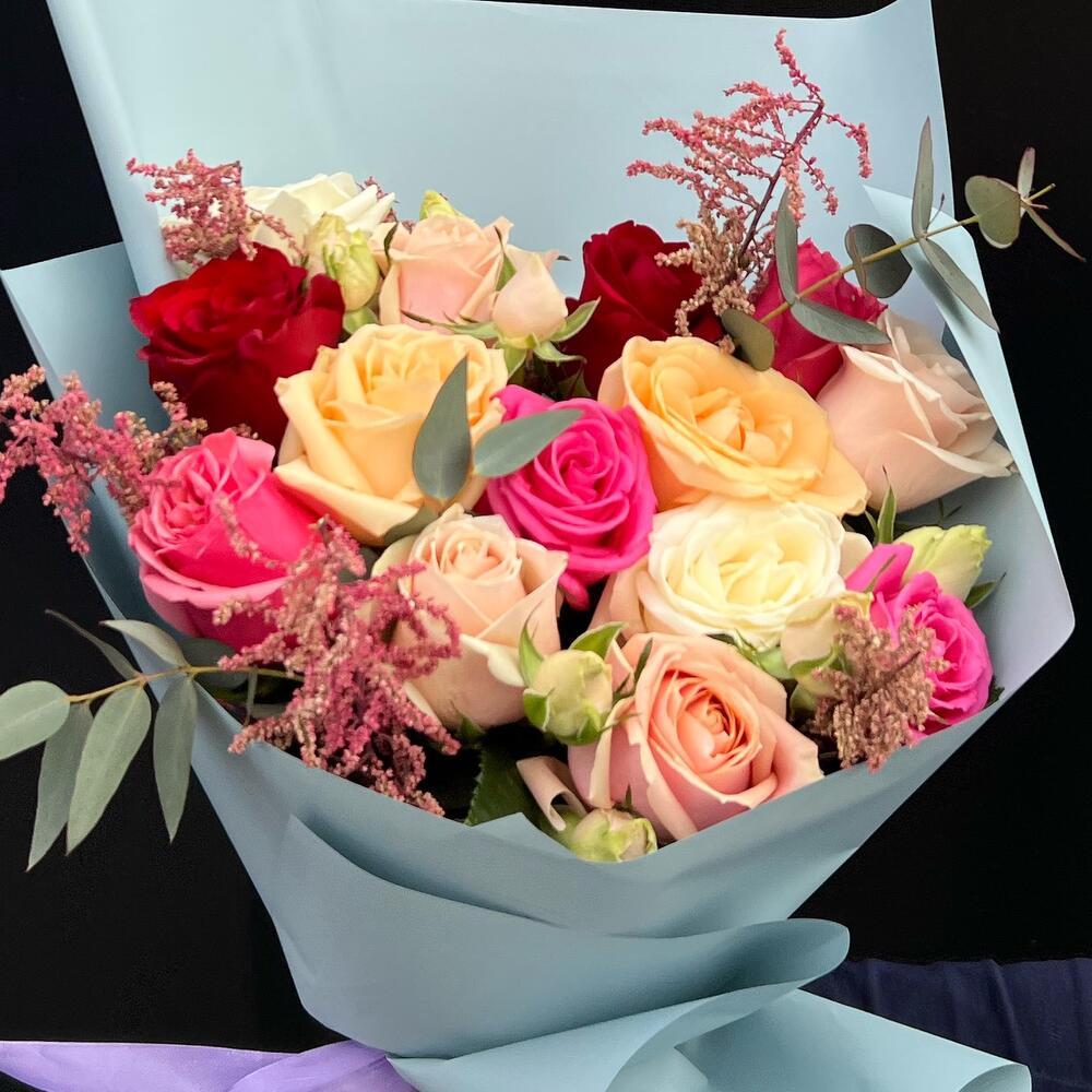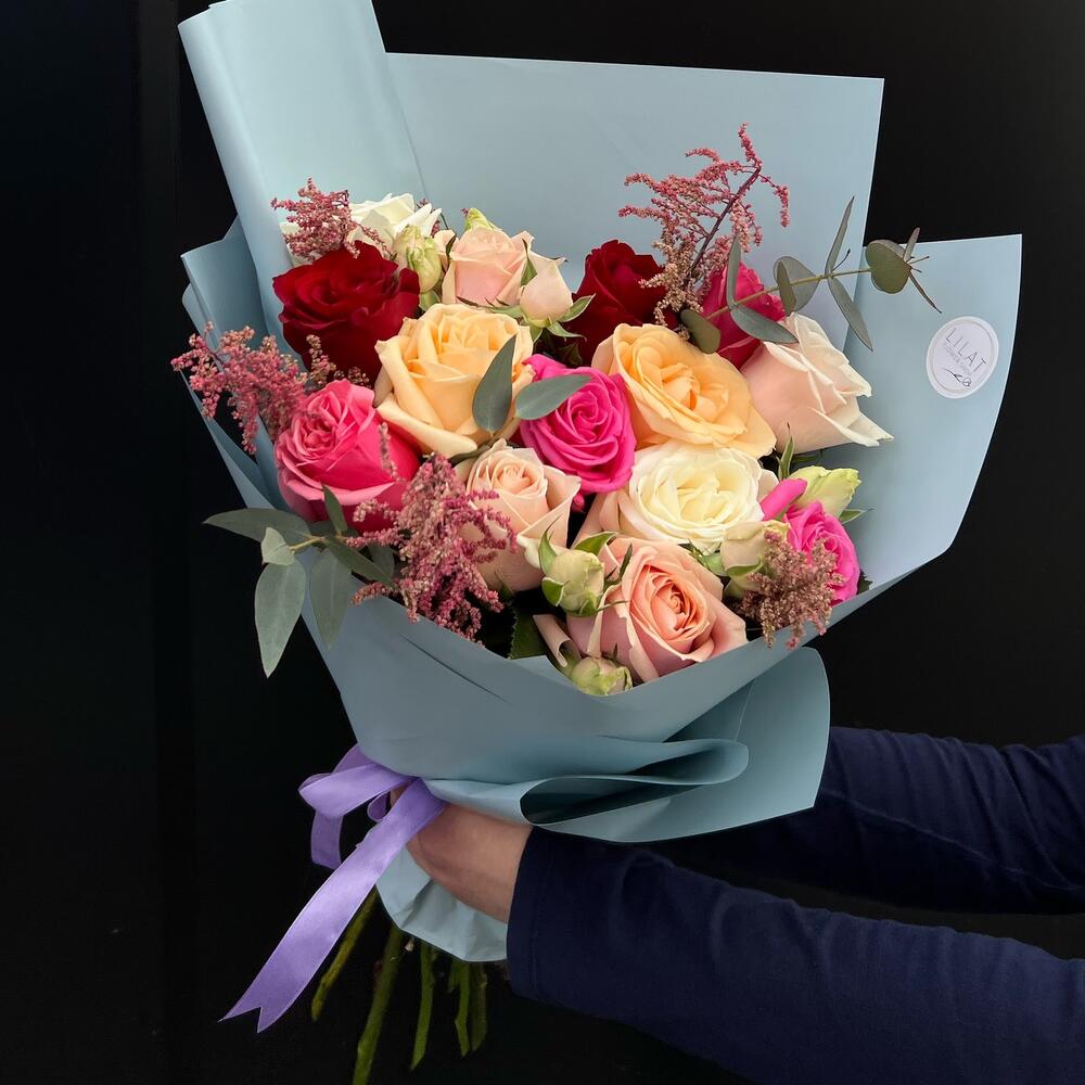 Гвоздики, Кустовые розы, Лизиантусы, Пионовидные розы, Розы