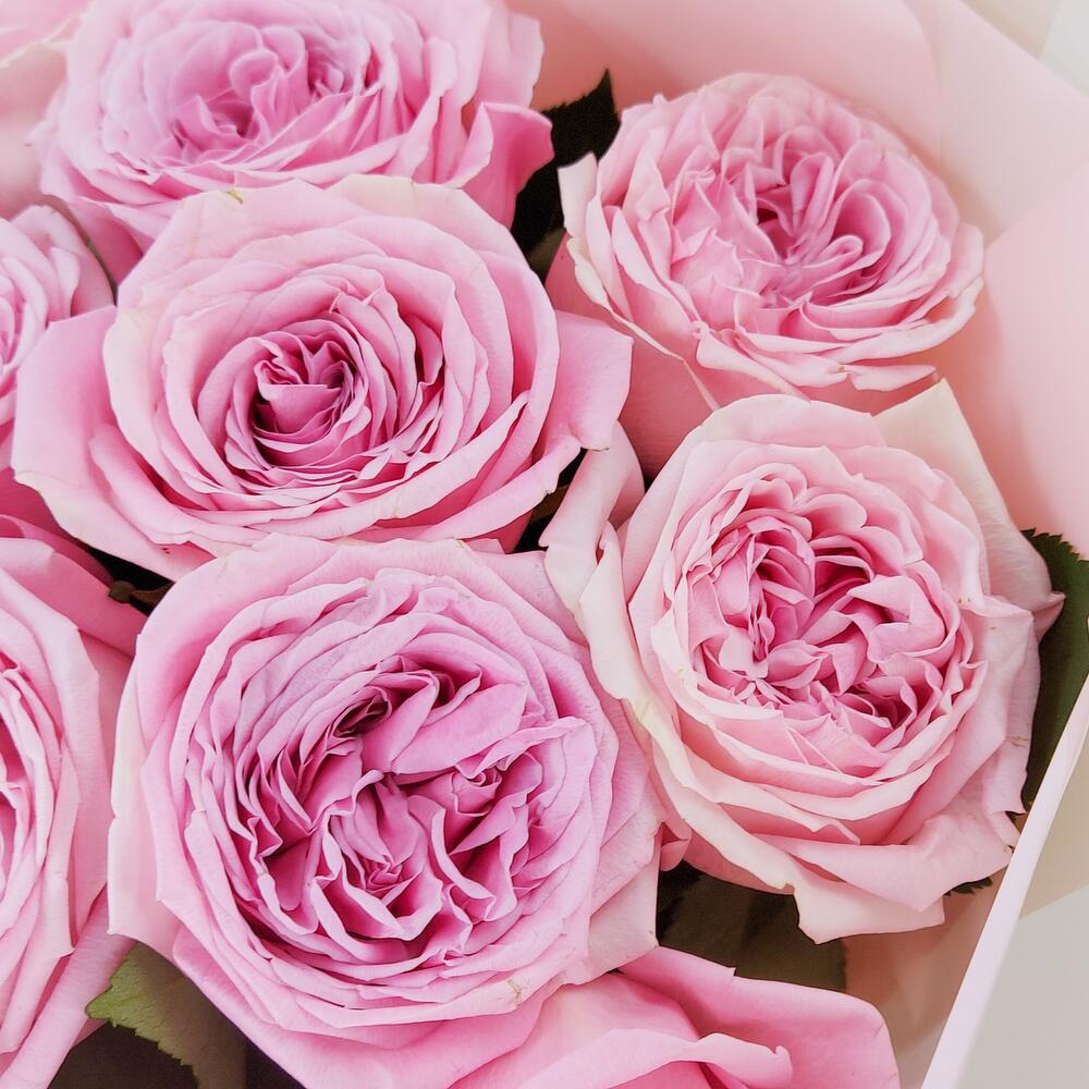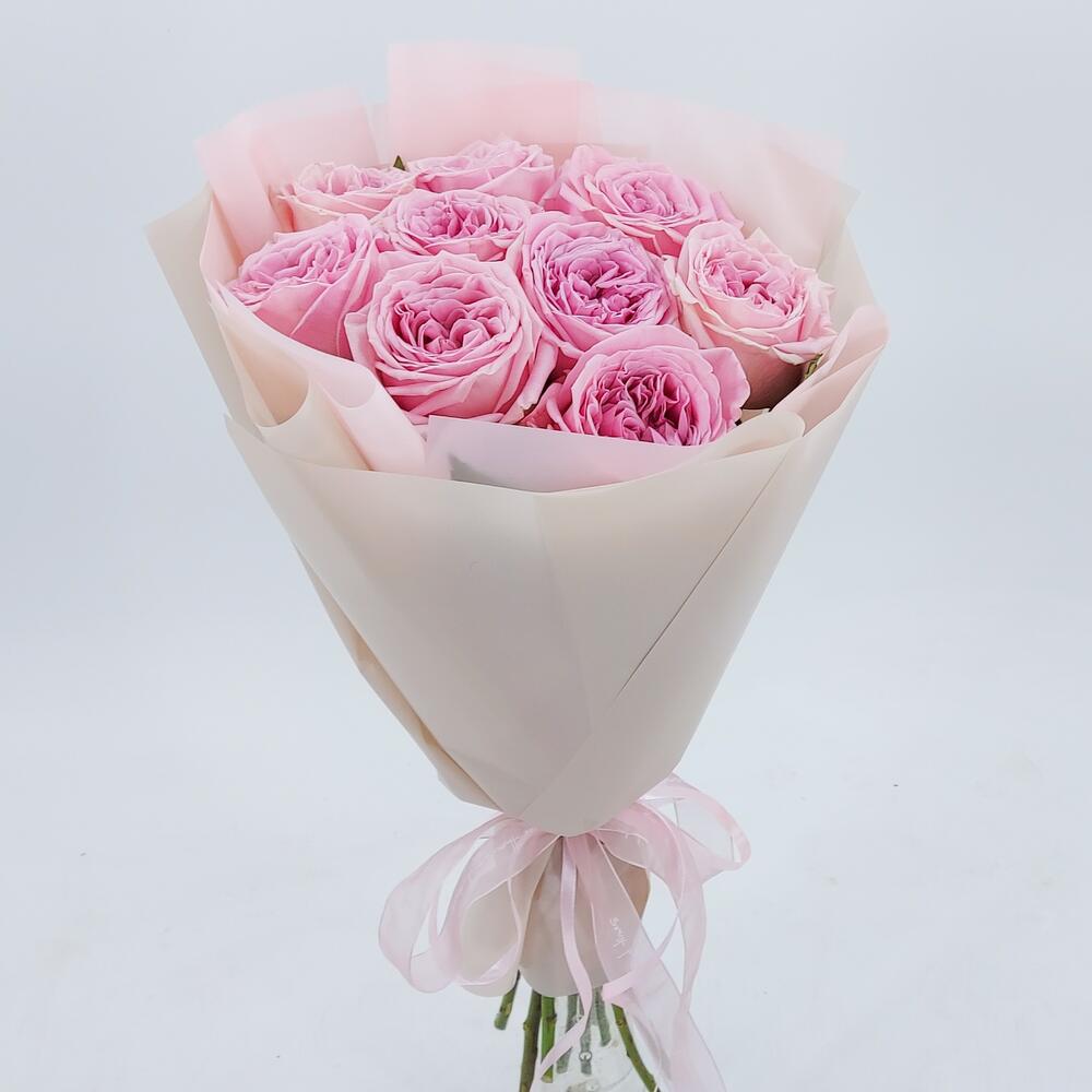 Роза пионовидная – 9 шт.Упаковка дизайнерская – 1 шт.
