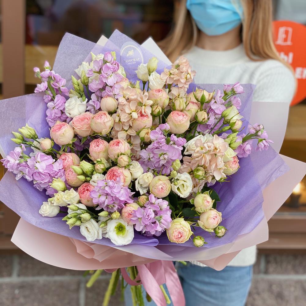 Гвоздики, Кустовые розы, Пионовидные розы, Розы