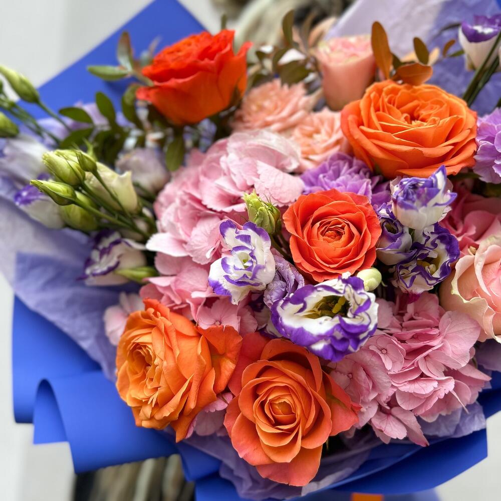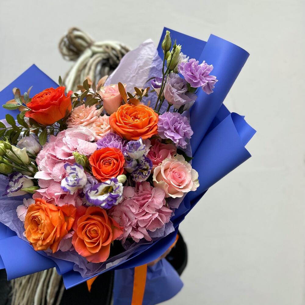 Гвоздики, Кустовые розы, Лизиантусы, Пионовидные розы, Розы