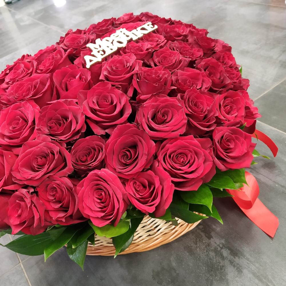 Роза Эквадор – 85 шт.Корзина без ручки – 1 шт.