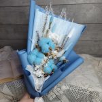 «Лавандовое созвездие» Букет из розы, гвоздики, статица и хлопка